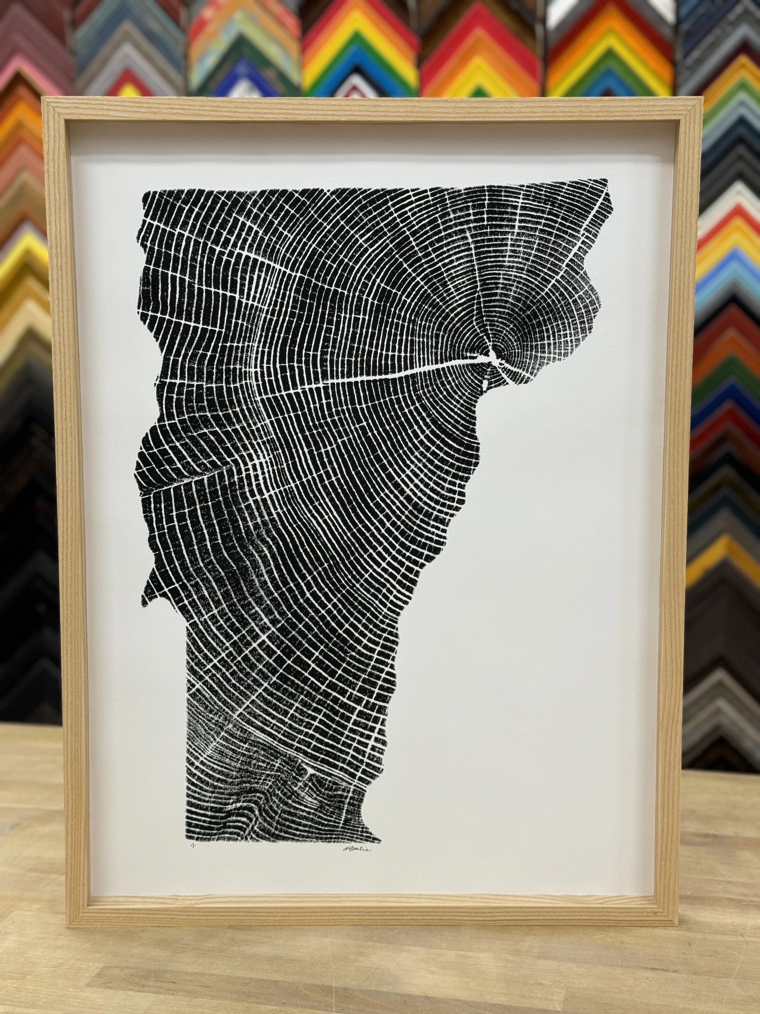 You can feel good about getting your family treasures and local art framed with local moulding from Vermont Hardwoods right here at The Frame Dames!